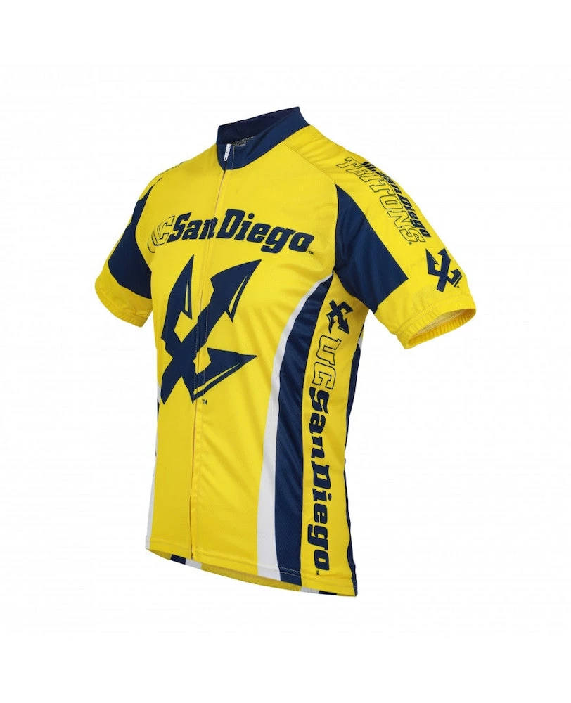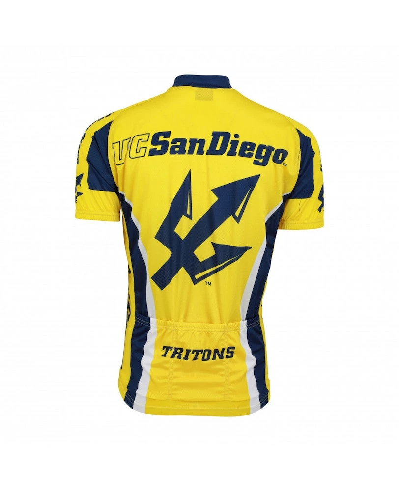 Go Tritons! Show Your Pride with this officially licensed University of California, San Diego UCSD Cycling Jersey! Elegance is the only thing that remains when fashion changes. This college cycling jersey cut and v-neck guarantee the perfect fit to waist and neck, while material technology ensures optimal breathability. The 100% aerodynamic short sleeves are perfect for cycling outings and the incorporation of latest generation fabrics that combine polyester and spandex provide high elasticity performance. Full Hidden zipper, anti-friction Zip Guard, reflective safety tag and three pockets on the back complement the rest of the design. Ride in Style. UCSD College Cycling Jersey Features: