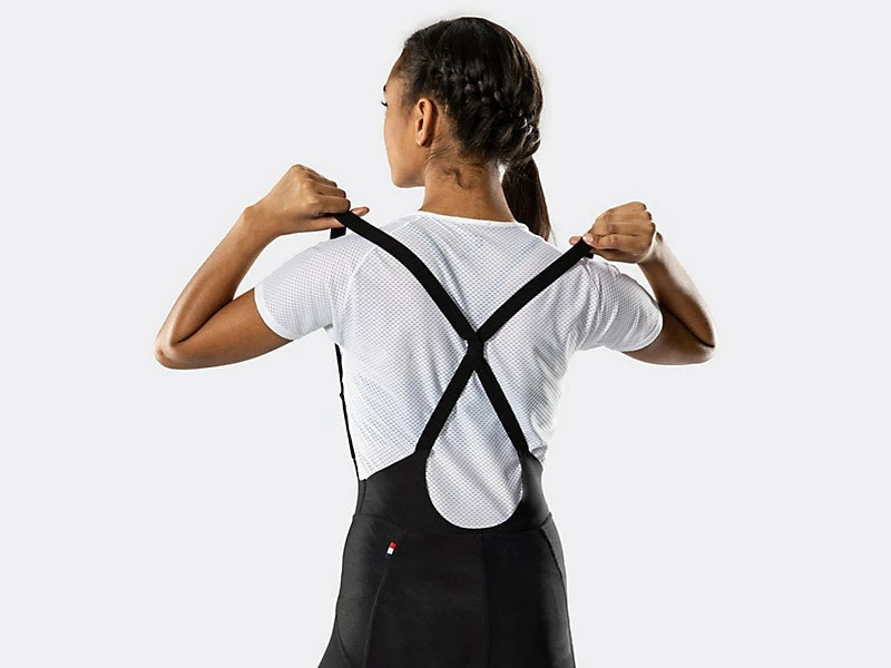 A luxury women’s bib short with the unique convenience of Nature Breakaway.