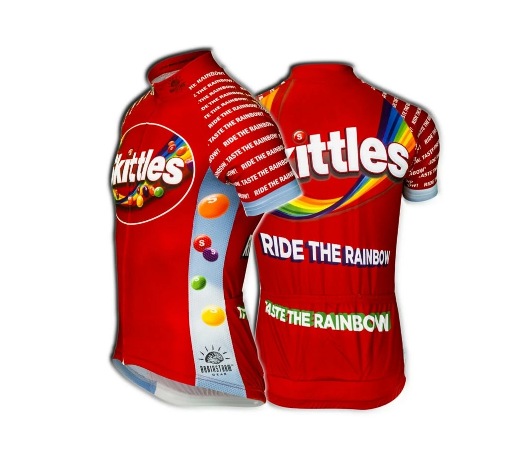 Is there any sweeter success than powering through that last hurdle and attaining your goal? Here at Brainstorm Gear, we celebrate personal achievement, and we have fun while we do it! You’ll look good and feel great in this performance Skittles® jersey, so hop on that bike and Ride the Rainbow!