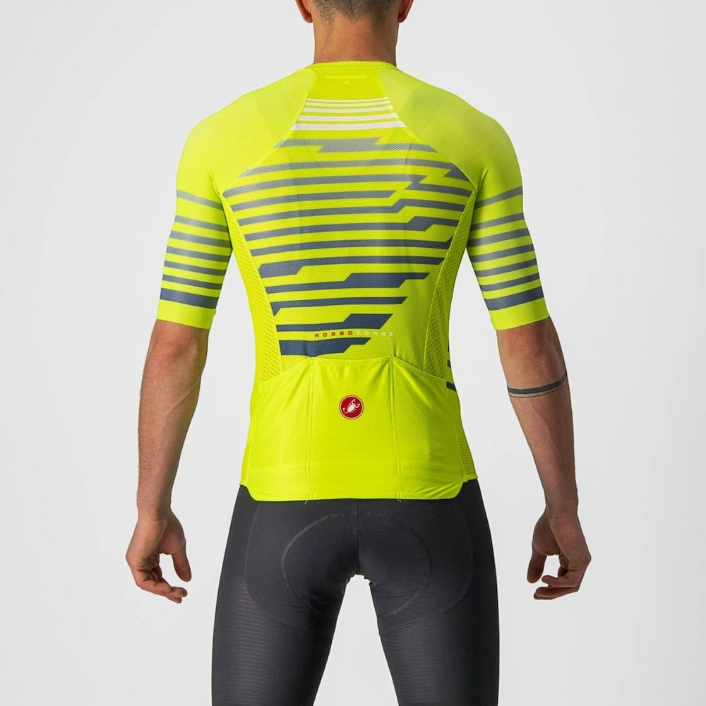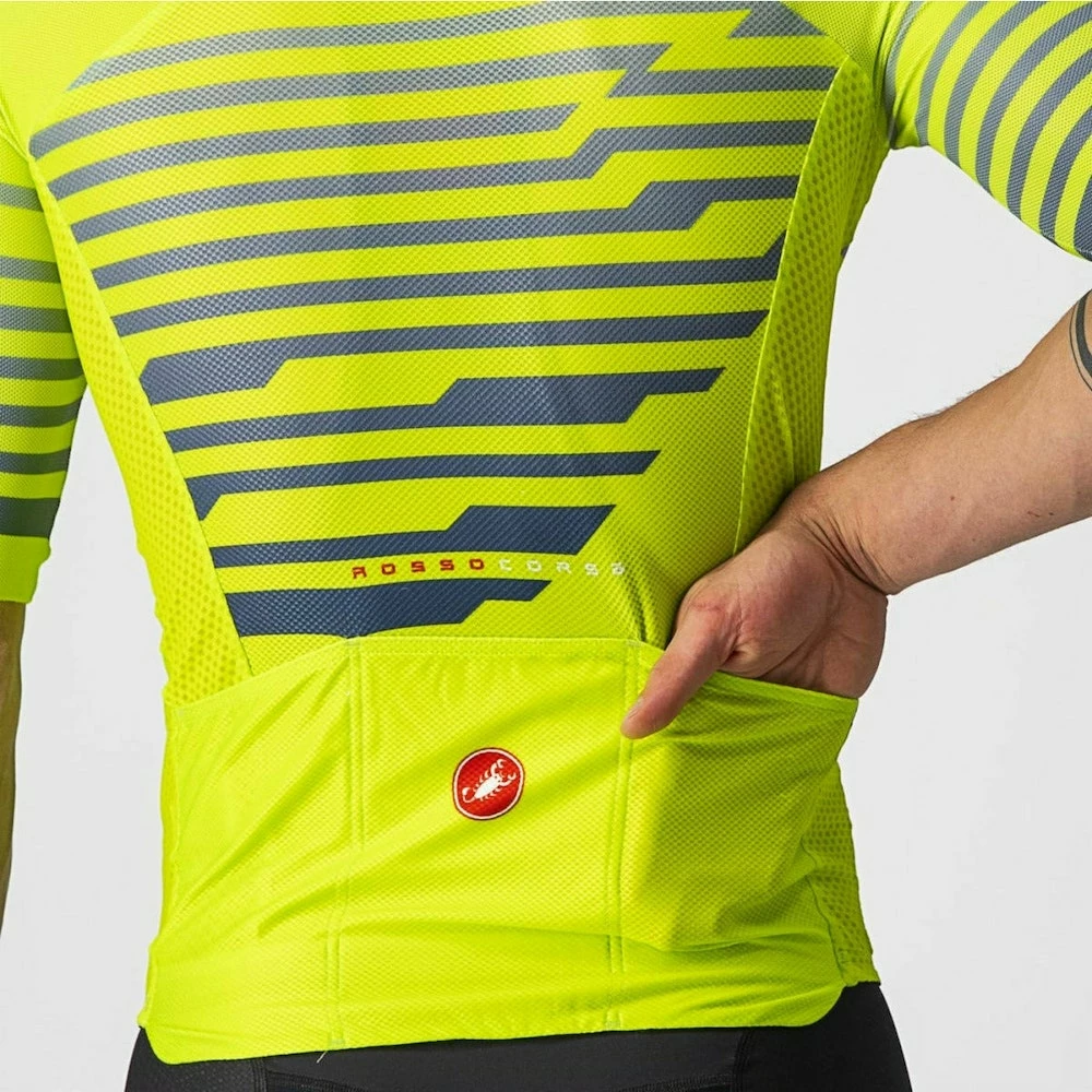 The Castelli Climber’s 3.0 Full-Zip Short Sleeve Cycling Jersey was created for the hottest days. The Castelli Climber’s 3.0 Full-Zip Short Sleeve Cycling Jersey allows ample airflow, is quick to dry and blocks more than 90% of UV rays on your back. A great choice for your long summer rides, or add a base layer and it’s a three-season jersey.