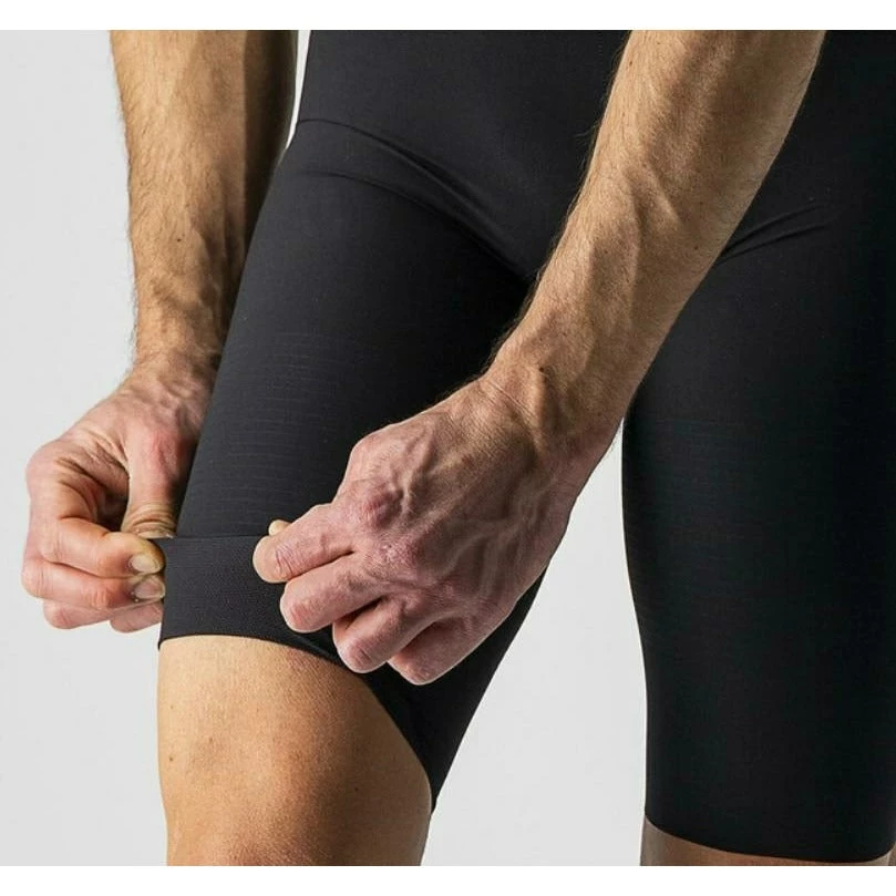 Castelli engineered a new fabric that changes depending on the needs over various parts of the body. The lower leg has a raw-cut leg ending and rubberized yarns to guarantee a flat grip to keep the leg in place. The fabric becomes lighter in the thigh, while the four-way stretch provides just the right amount of muscle support. In the pelvis area, the compression and support increase to keep the seat pad and everything else in place,. At the back there’s a thicker fabric to avoid any transparency issues.