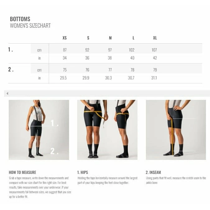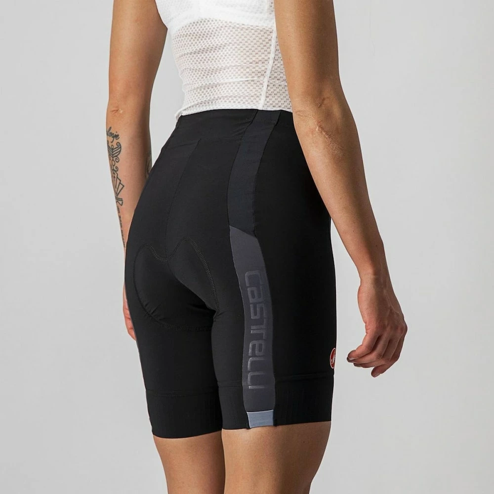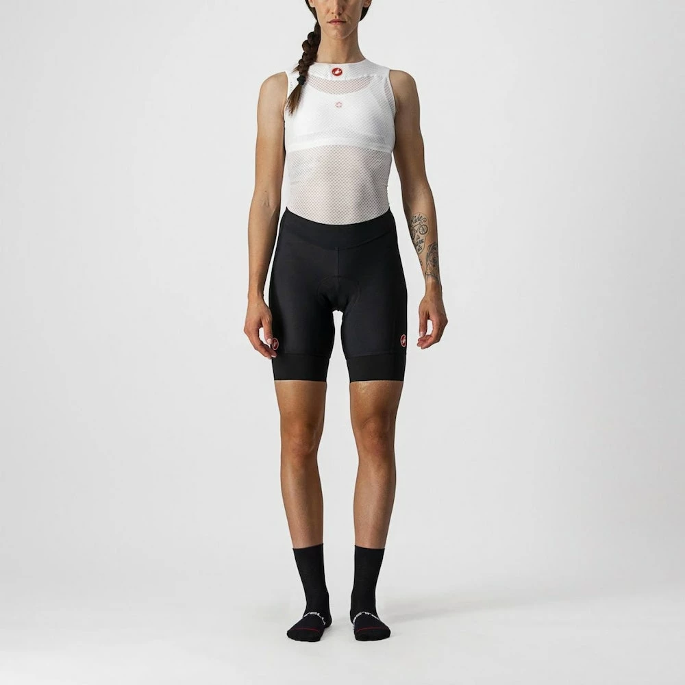 The Castelli Women’s Velocissima 2 Cycling Shorts for sale are only the regular road shorts. The additional items on the model are only for display purposes to see how the shorts look with complimentary apparel.