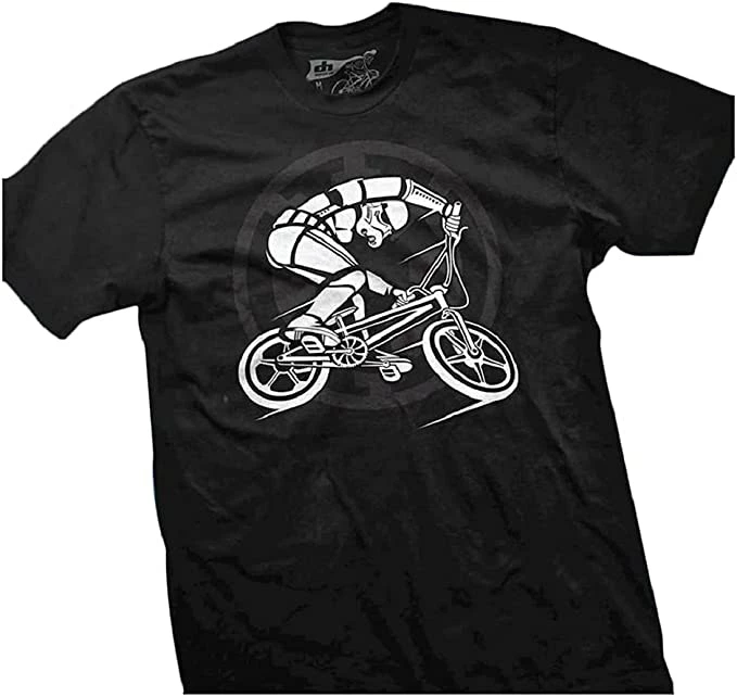 Grab your bike and join the dark side! BMX Stormtrooper shirt inspired by our buddy, Crazy Al Cayne running the bmx scene in NYC. 100% cotton t-shirt. (A-8)
