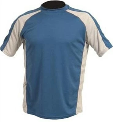 Flatlocked seams for extra strength & comfort. High performance, easy-care PolytexTM fabric. Zipped side key/coin pocket. Loose cut, ideal for runners & wearing with baggy shorts. Color: Blue/Stone. Size: Large.
