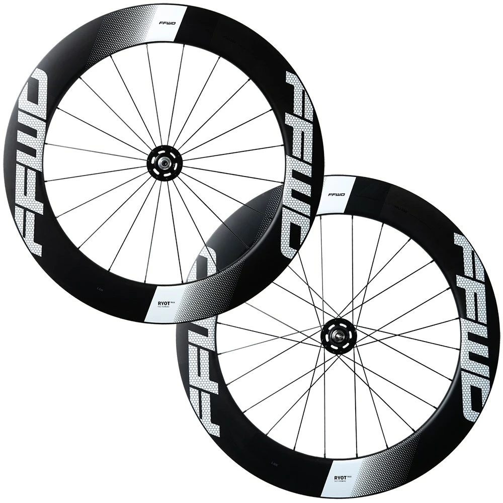 The wheels are built on the tried and tested FFWD high-quality track hubs finished in black and with black Sapim CX Sprint spokes for increased lateral and torsional stiffness with 20 front and 24 rear spokes. Since no brake surface is required for track, the RYOT77 UV protected decals are applied to the rim edge and available in white color option.