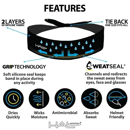 The Halo II Headband is Halo Headband’s best-selling headband. Featuring a classic elastic pullover design, the Halo II will fit any head comfortably to redirect sweat and moisture from your eyes and face. Featuring their patented SweatBlock Technology and Dryline® Fabric, these athletic sweatbands will keep up with your high performance training. The Halo II’s are great sweatbands for running, cycling, or virtually any other activity that will work up a sweat. They fit comfortably under helmets and are great headbands for men or women.