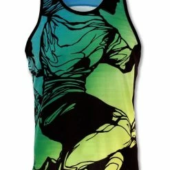This Men’s Motion Singlet is all about movement, speed and nature. Inspired by those moments when you feel so powerful and invincible, like your feet are flying and the scenery is a blur around you. The background is composed of vibrant nature colors and is sharply contrasted by the clean black-inked style of the foreground.