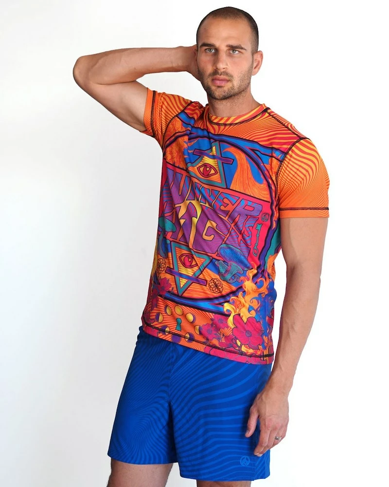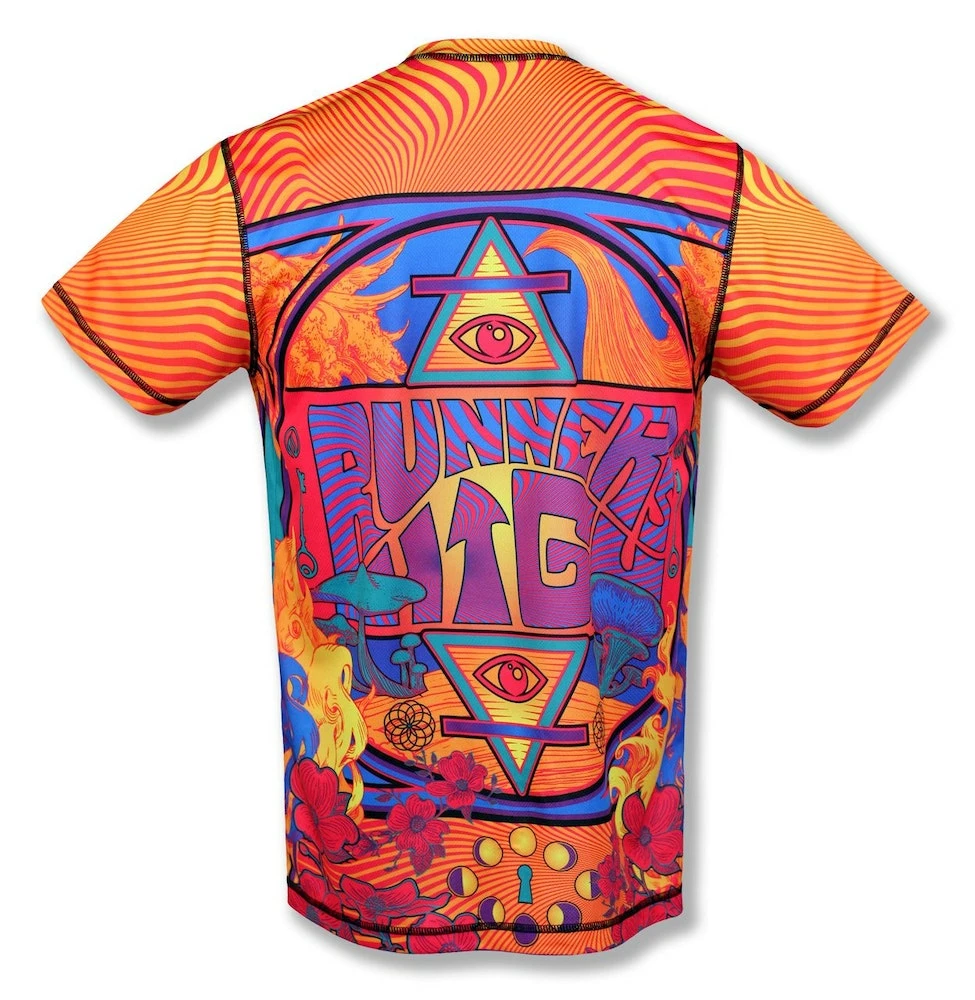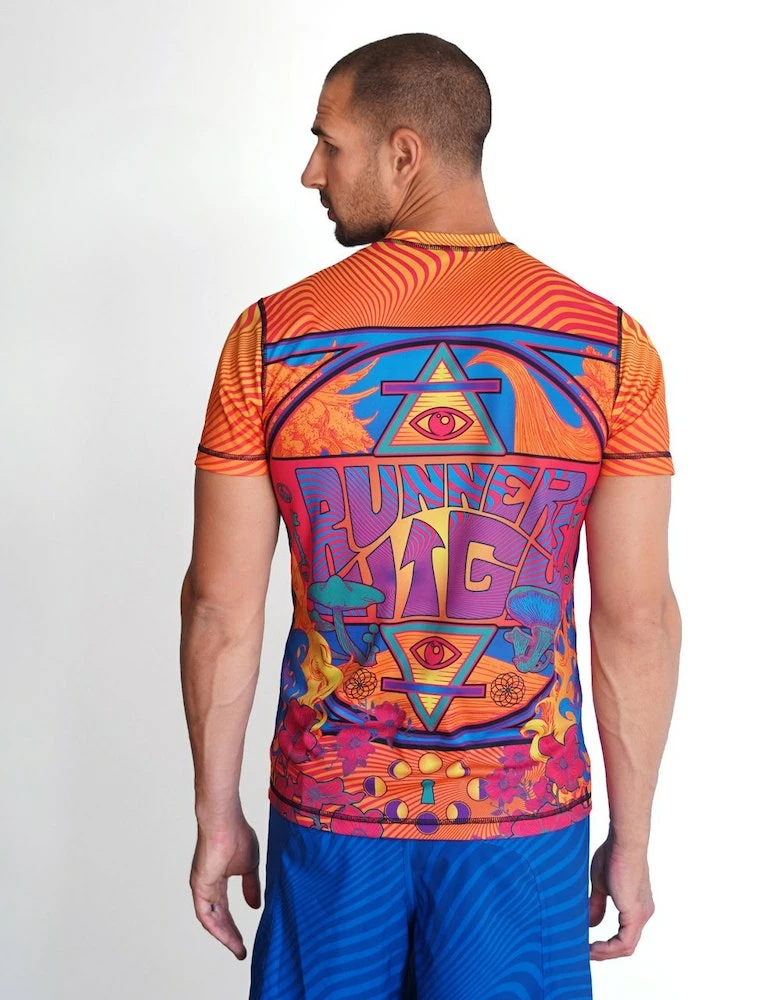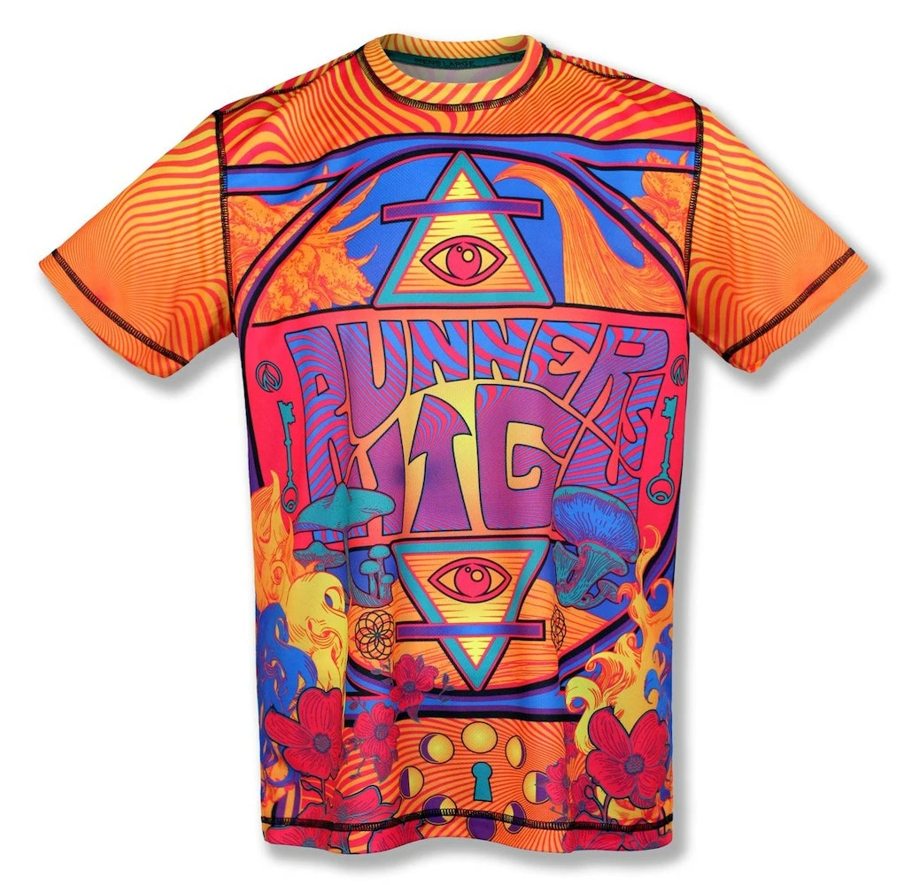 The Men’s Runner’s High Tech Shirt has a 70’s rock poster vibe with colors as bright and electric as that charge you get from a great run. The favored shirt for Illuminati everywhere, this Dry I.C.E. Tech Shirt will keep you cool and comfortable during your toughest workouts. Sure to lift your spirits, get you excited for your next run and maybe even help you discover the meaning of life, the universe and everything.