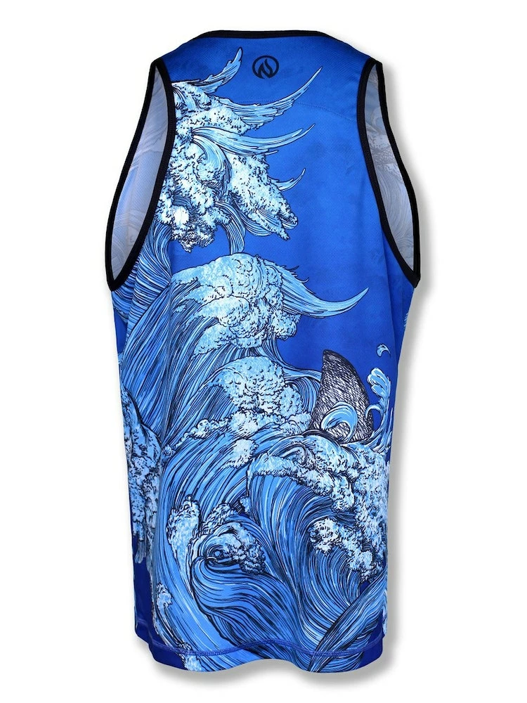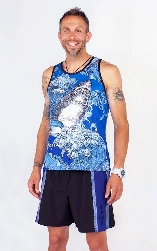 Whether you love sharks, Shark Tank or Shark Week, this predator of the deep is sure to bring a big, toothy grin to all who see you! The wonderfully-illustrated turbulent waves will bring to mind that famous saying, “We are going to need a bigger boat!” The perfect athletic tank for workouts, runs, races and finding Nemo!