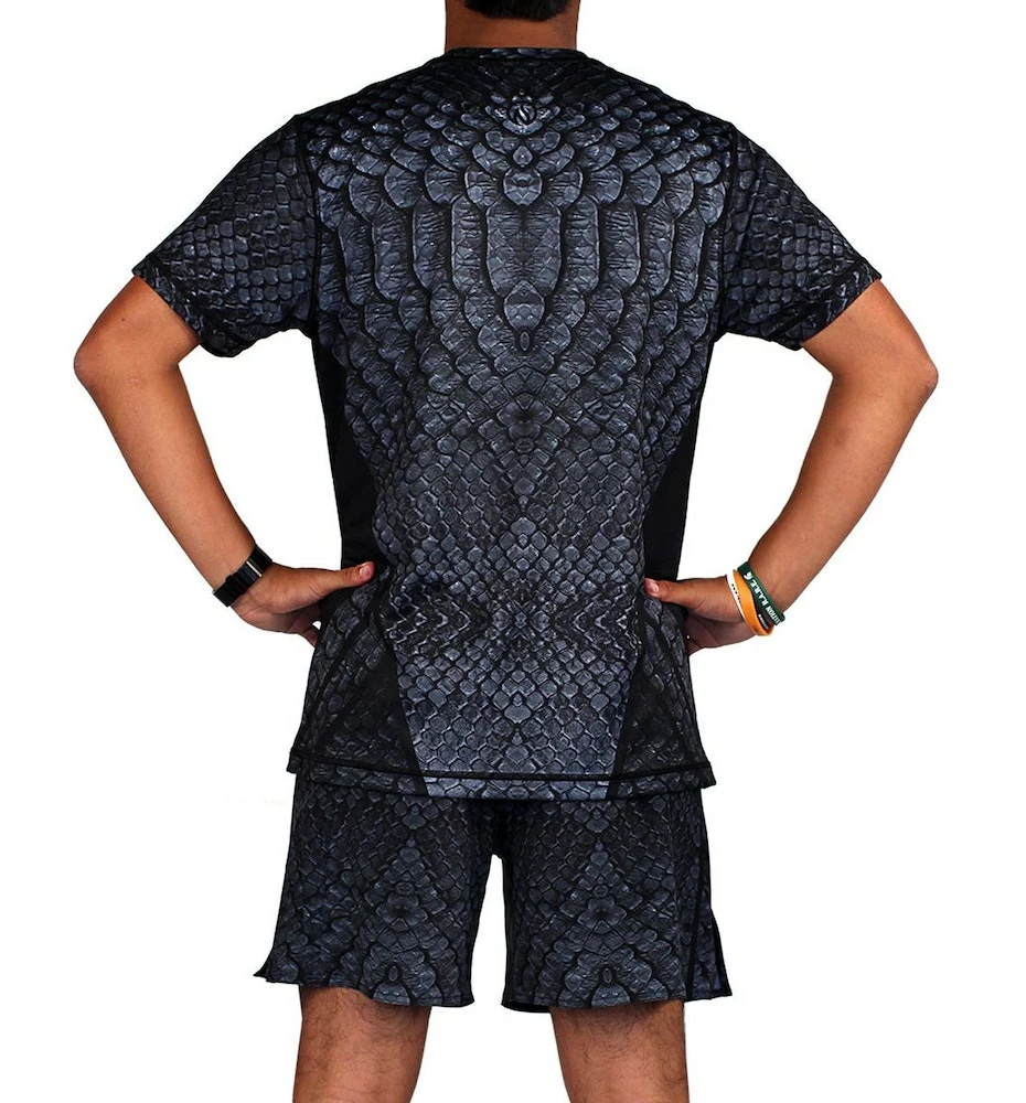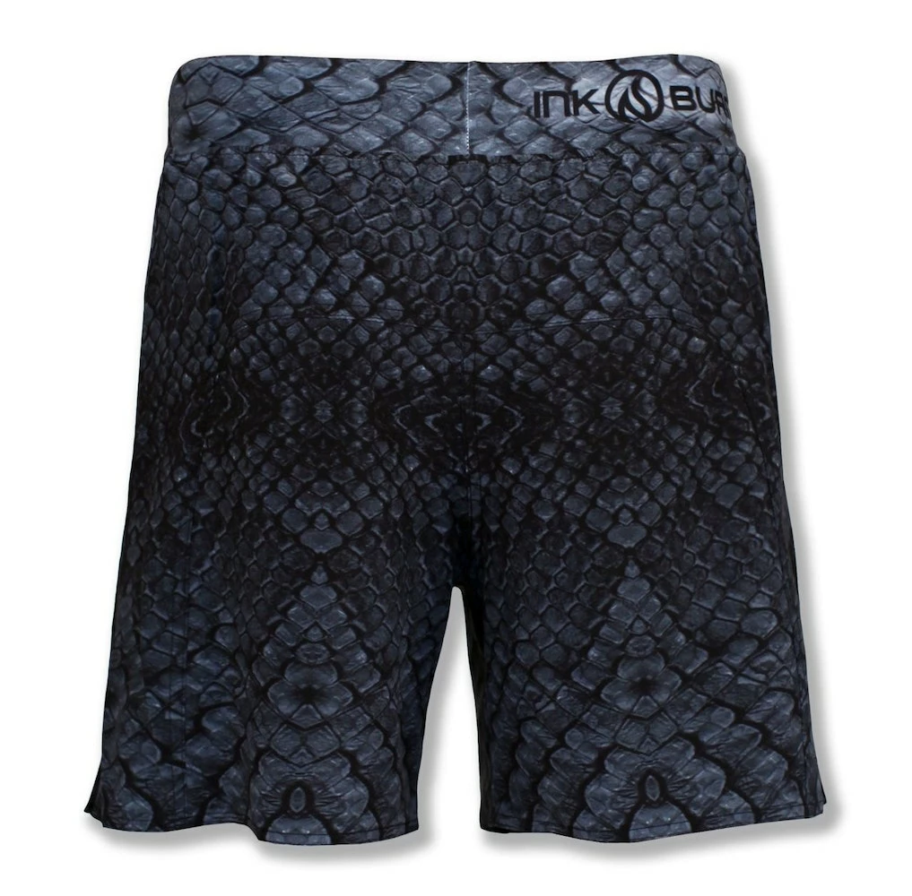 The Men’s Stealth Shorts are designed to fly under the radar but draw you in for a closer look. Evocative of a certain night fury dragon that appears out of the dark breathing fire and crushing the competition. The richly textured design starts with the scales of the deadly Black Mamba, then shifts into overdrive to give it a faster, more sleek look. These Dry I.C.E. Shorts feature an adjustable waistband and compression shorts with a generous pocket on each leg. They are designed to keep you cool and comfortable even when you are breathing fire from a tough workout. The perfect addition to your INKnBURN collection that will go with absolutely everything else we make.
