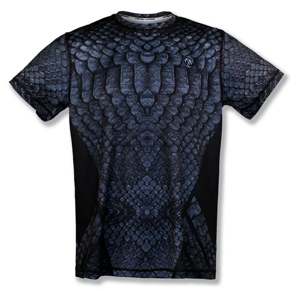The INKnBURN Men’s Stealth Tech Shirt is designed to fly under the radar but draw you in for a closer look. Evocative of a certain night fury dragon that appears out of the dark breathing fire and crushing the competition. The richly textured design started with the scales of the deadly Black Mamba, then shifts into overdrive to give it a faster, more sleek look. This Dry I.C.E. Tech Shirt will keep you cool and comfortable even when you are breathing fire from a tough workout. The perfect addition to your INKnBURN collection that will go with absolutely everything else we make.