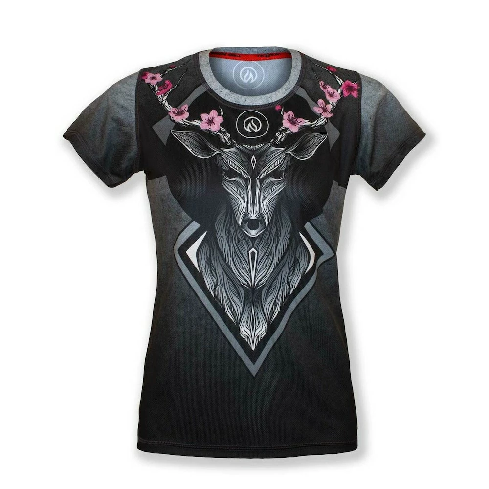 Agile, fast and incredibly adaptable, Deer also represent a spirit of adventure. The antlers are a symbol of protection and a sign of renewal since they regrow every 5 years. The sakura blossoms are a reminder savor the moment. This light-weight, tech shirt is designed for speed, but also works well as a cool, kick-back top that won’t show sweat! INKnBURN apparel doesn’t fade, so this tech will look great years from now! Vibrant art you can’t feel, on our super-light, moisture-wicking Dry I.C.E. Fabric. 100-Mile tested by ultra runners for comfort at extreme distance and a unique, head-turning design.