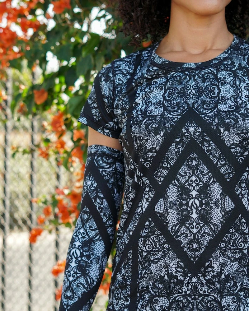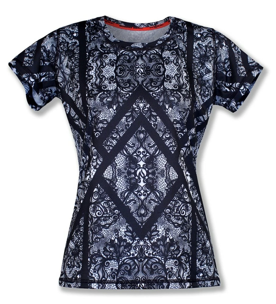This Women’s Gatsby Tech Shirt has a bold Art Deco style that transports you to another place and time. Made with INKnBURN’s Dry I.C.E. Fabric this top is designed to keep you comfortable, chafe free and dry for any athletic activity. Perfect for New Year’s Eve runs and any special events you’ve been training hard for. But, there is no reason you can’t wear it for your next workout just because slipping on a little black lace makes you feel like a badass femme fatale!