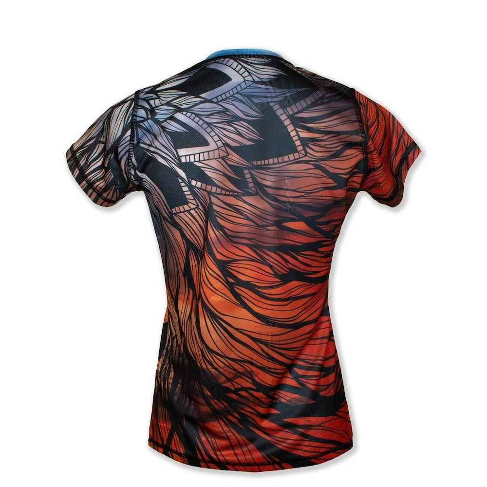 The Women’s Majestic Tech Shirt features a powerful illustration of a lion with the last light of the day radiating through the image. This light-weight, tech shirt is designed for speed, but also works well as a cool, kick-back top that won’t show sweat! INKnBURN apparel doesn’t fade, so this tech will look great years from now! Vibrant art you can’t feel, on our super-light, moisture-wicking Dry I.C.E. Fabric. 100-Mile tested by ultra runners for comfort at extreme distance and a unique, head-turning design.