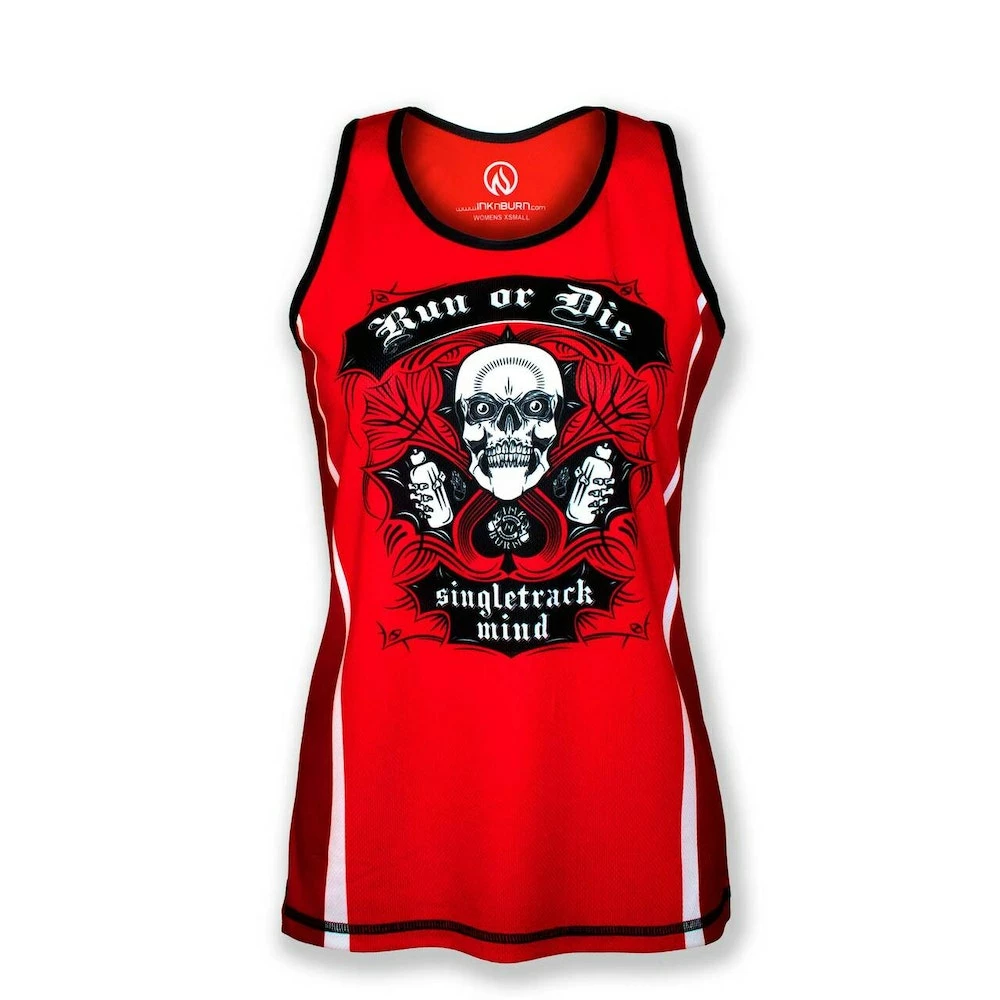 This design turns heads and says it all… take no prisoners, Get It Done. If this is you, this is your tank. This light-weight, race-cut singlet is designed for speed, but also works well as a cool, kick-back summer top that won’t show sweat! Vibrant art you can’t feel, on our super-light, moisture-wicking Dry I.C.E. Fabric. 100-Mile tested by ultra runners for comfort at extreme distance and a unique, head-turning design.