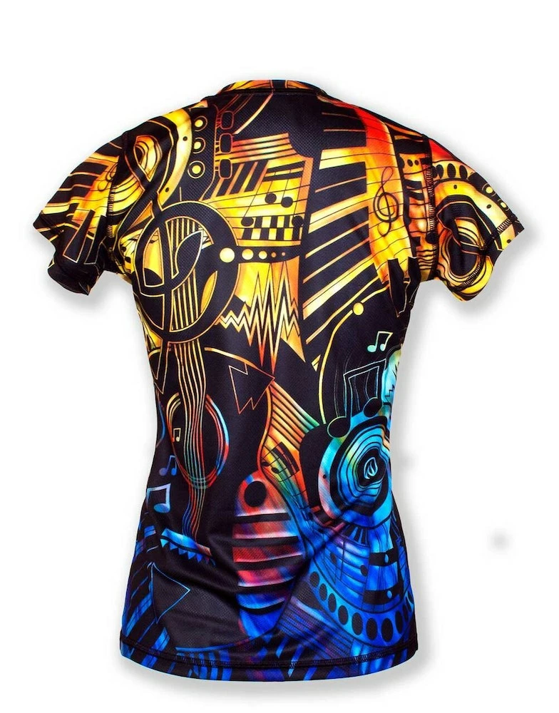 Rhythm and Hues plays with moods that music evokes by using color, composition and design. This light-weight, tech shirt is designed for speed, but also works well as a cool, kick-back top that won’t show sweat! INKnBURN apparel doesn’t fade, so this tech will look great years from now! Vibrant art you can’t feel, on our super-light, moisture-wicking Dry I.C.E. Fabric. 100-Mile tested by ultra runners for comfort at extreme distance and a unique, head-turning design.