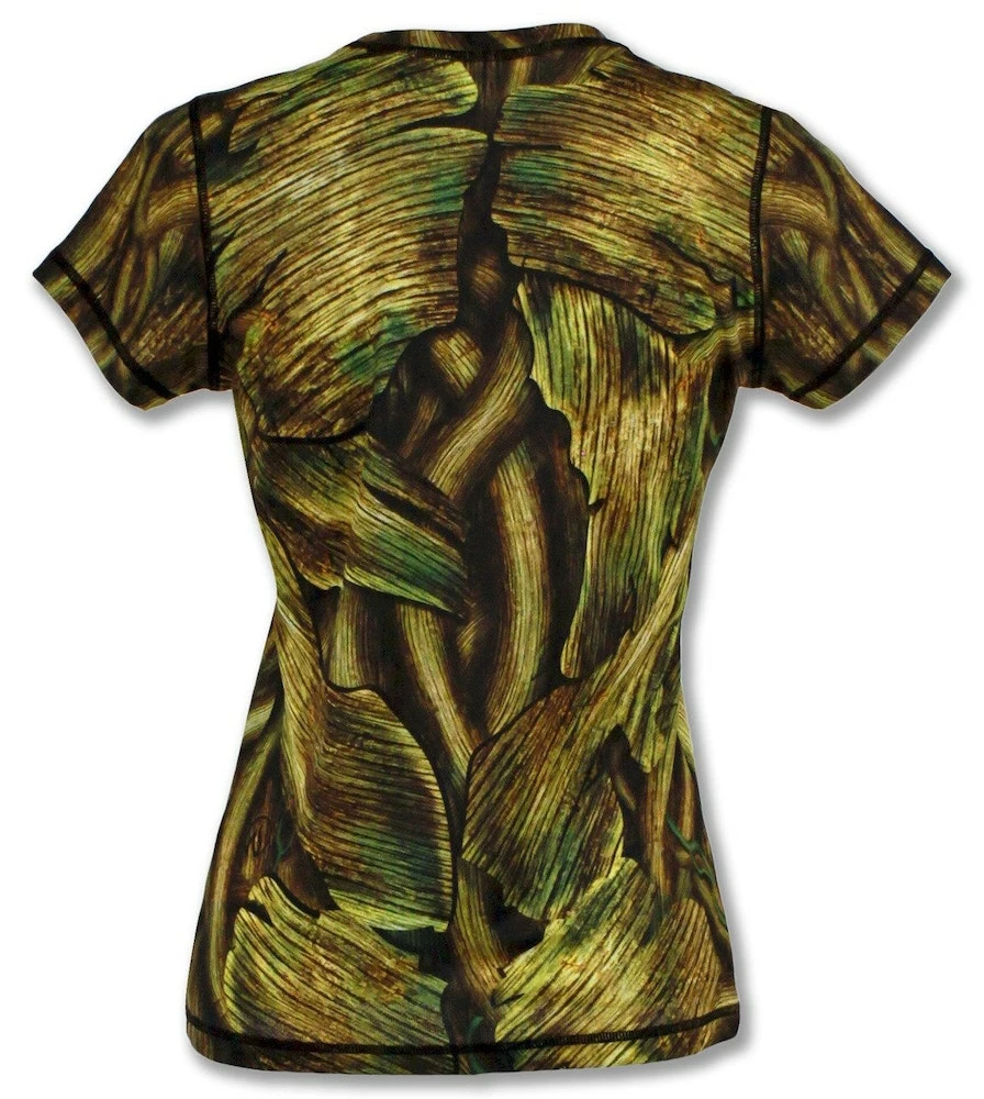 INKnBURN’s Women’s Shady Tech Shirt is meant to remind you of a cool, shaded alcove… one of those spots you might stumble across with fresh, mossy greens of spring on trees, roots and stones, maybe even a stream gurgling near by. This form-flattering design is sure to help you get in touch with your inner tree. A vibrant, dimensional and almost surreal looking shirt that is perfect for celebrating Earth Day, Arbor Day or just your love of nature every day!
