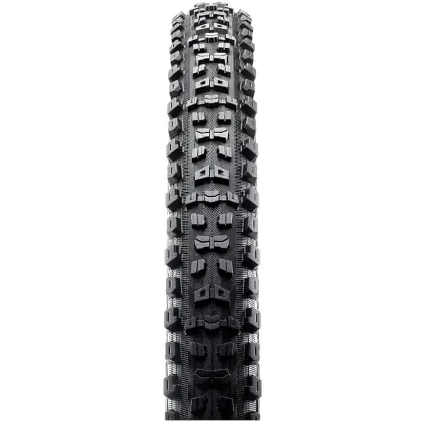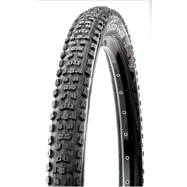 The Aggressor is designed for high-speed modern mountain bike trails. Advanced knob shaping creates extra gripping edges, and reinforced side knobs off er enhanced stability when cornering at speed. An all-around trail tire excelling on everything from loose cross country race courses to heavy all-mountain riding. Specification onditions: Loose over Hard, Loose, Medium, Wet ornering Control: 1 2 3 4 olling Efficiency: 1 2 3 4 PI: 60 ead: Foldable ly Construction: Single ompound: Dual ax PSI: 60 ech: Tubeless Ready, EXO Tubeless Ready: Tubeless tyres provide the rider with many benefits: the ability to run lower air pressures, which improves traction; lower rolling resistance when compared to a tube-type tyre; and less chance of flatting since there is no tube. Maxxis Tubeless Ready (TR) tyres provide the benefits of a UST tubeless tyre without the weight penalty. Our TR tyres use a standard casing and require the use of a liquid sealant in order to make them airtight.EXO: An extremely cut-resistant and abrasion-resistant material added to the sidewalls of select mountain tyres. This densely woven fabric is also lightweight and highly flexible, ensuring that the performance of the tyre remains unaffected. Choose EXO Protection for exceptionally rocky, treacherous trails where the chance of sidewall cuts and abrasions is high.