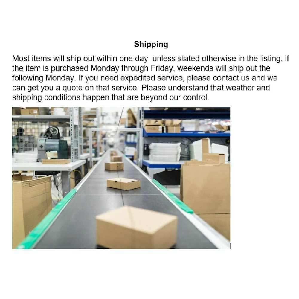 Return accepted, item must be returned in 30 days. Refund will be given as Money Back. The Buyer is responsible for return shipping costs unless stated in the listing. If you have any issues or need to return an item for any reason, please contact us to allow us the opportunity to resolve to your satisfaction. If you purchased a new item is must be returned in New “Sellable” condition in original undamaged packaging. If new item or package shows damage a restocking fee will apply!