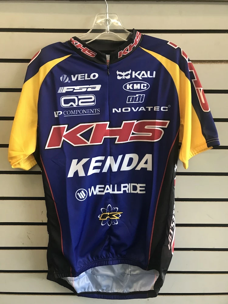 These are the current style racing style jersey with a snug, contoured fit. They are cut shorter to pair with the current, higher-waist shorts or bibs. The pockets sit higher on the back, not down below the waist. The sleeves are shorter and ride higher on the bicep. Material is a thin, lightweight gauge with plenty of stretch for a snug, but comfortable feel. This is a racing-style jersey and runs small. We only have limited quantities in certain sizes.