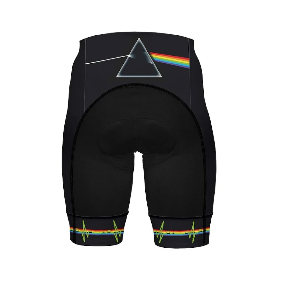 A sport-level short designed to maximize comfort around the legs and seat panels for long rides on the bike. Ergonomically-paneled, with 3” leg bands, and a silicone leg gripper, provides exceptional comfort and security without restricting the range of movement. The Iconic Pink Floyd Dark side of the Moon Logo.