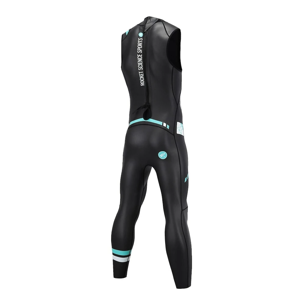 The Rocket Science One Sleeveless Triathlon wetsuit is an entry-level wetsuit featuring a comfortable neckline as well as ankle and wrist openings designed to keep water out but come off easily in T1. Shoulder flexibility is not sacrificed at all while the 3mm thickness in the core and upper legs keeps the body in a natural swimming position. The Rocket Science One Sleeveless One Triathlon wetsuit is appropriate for short or long-distance swims and is flexible for whatever swim stroke you choose.