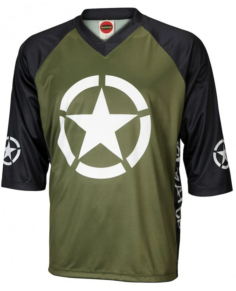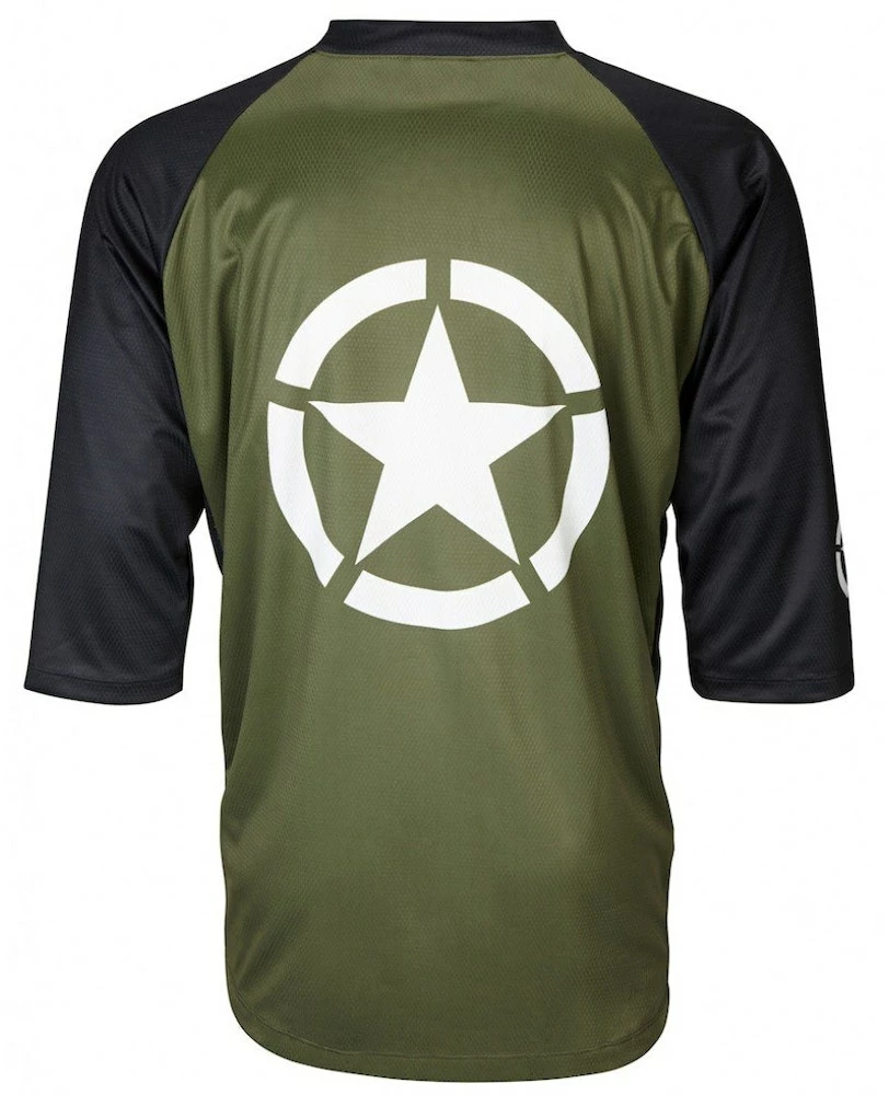 The Liberator Men’s Mountain Bike Jersey features a 3/4 length sleeve and a loose fitting casual style. The loose fit on this mountain bike jersey provides great mobility while on the trail while still providing ample room for protective gear. The jersey also features a flat V Neck collar which provide a great fit. Like most jerseys this mountain bike jersey is constructed out of dry sport polyester. The breathable lite weight fabric works to wick moisture away from the skin to keep you dry and cool on those hot days out on the trail. The jersey has no elastic on the waist of cuffs and no pockets. Its perfect for use with a hydration pack.