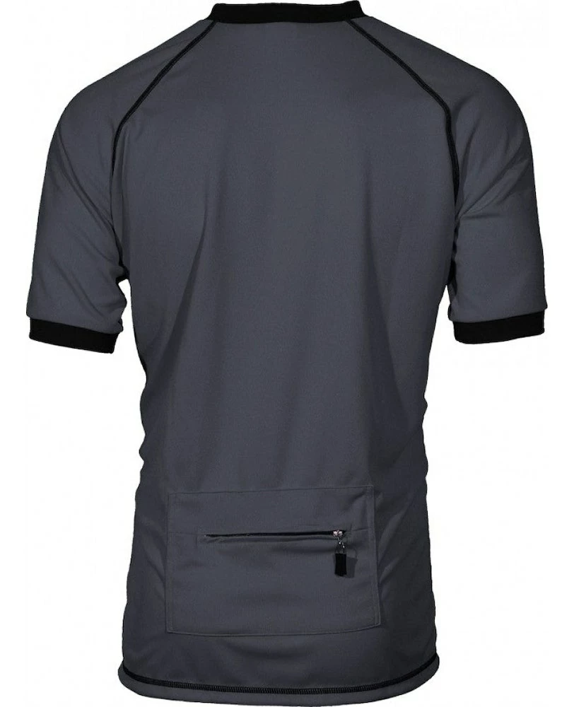 Made out of DrySport wicking polyester keeps you cool and dry. Casual style mountain bike jersey. Crew neck. 15′ front zipper. Zippered rear pocket. Contrasting flat seam stitching.